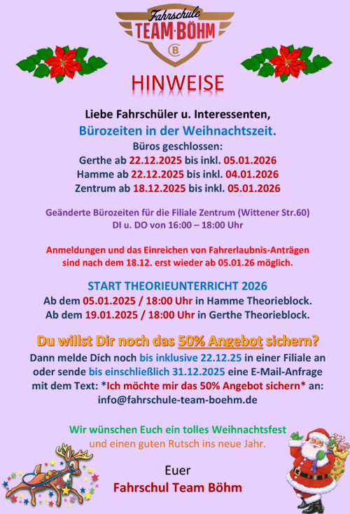 Wir beraten Dich in einem der Fahrschulbüros gerne persönlich.